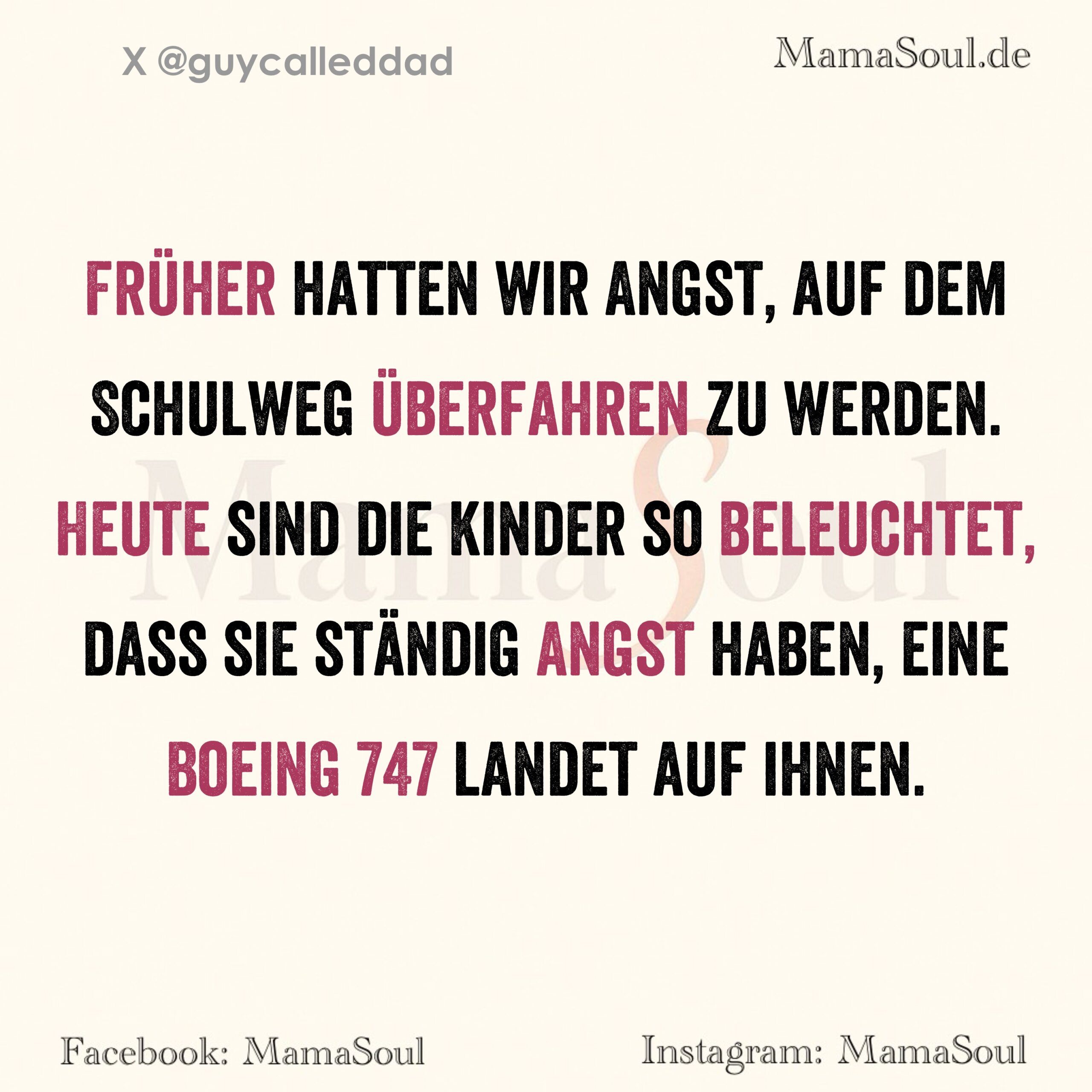Heute sind die Kinder so beleuchtet, dass sie ständig Angst haben, eine Boeing 747 landet auf ihnen.