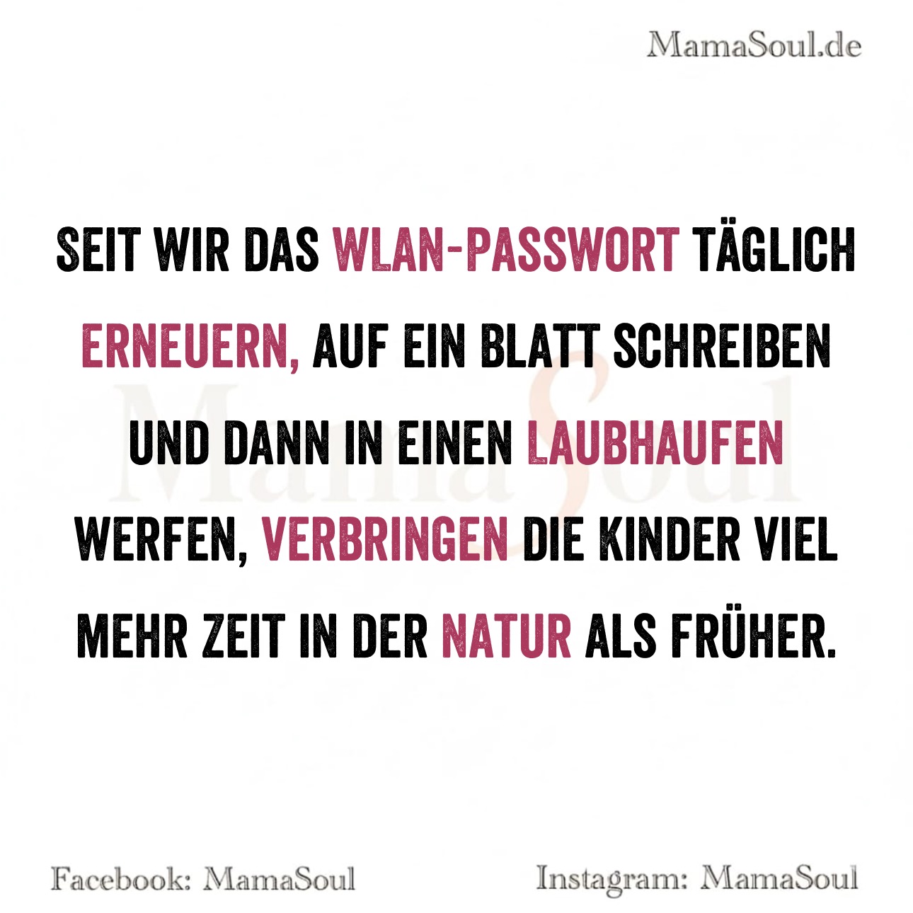 Seit wir das WLAN-Passwort täglich erneuern, auf ein Blatt schreiben und dann in einen Laubhaufen werfen, verbringen die Kinder viel mehr Zeit in der Natur als früher.