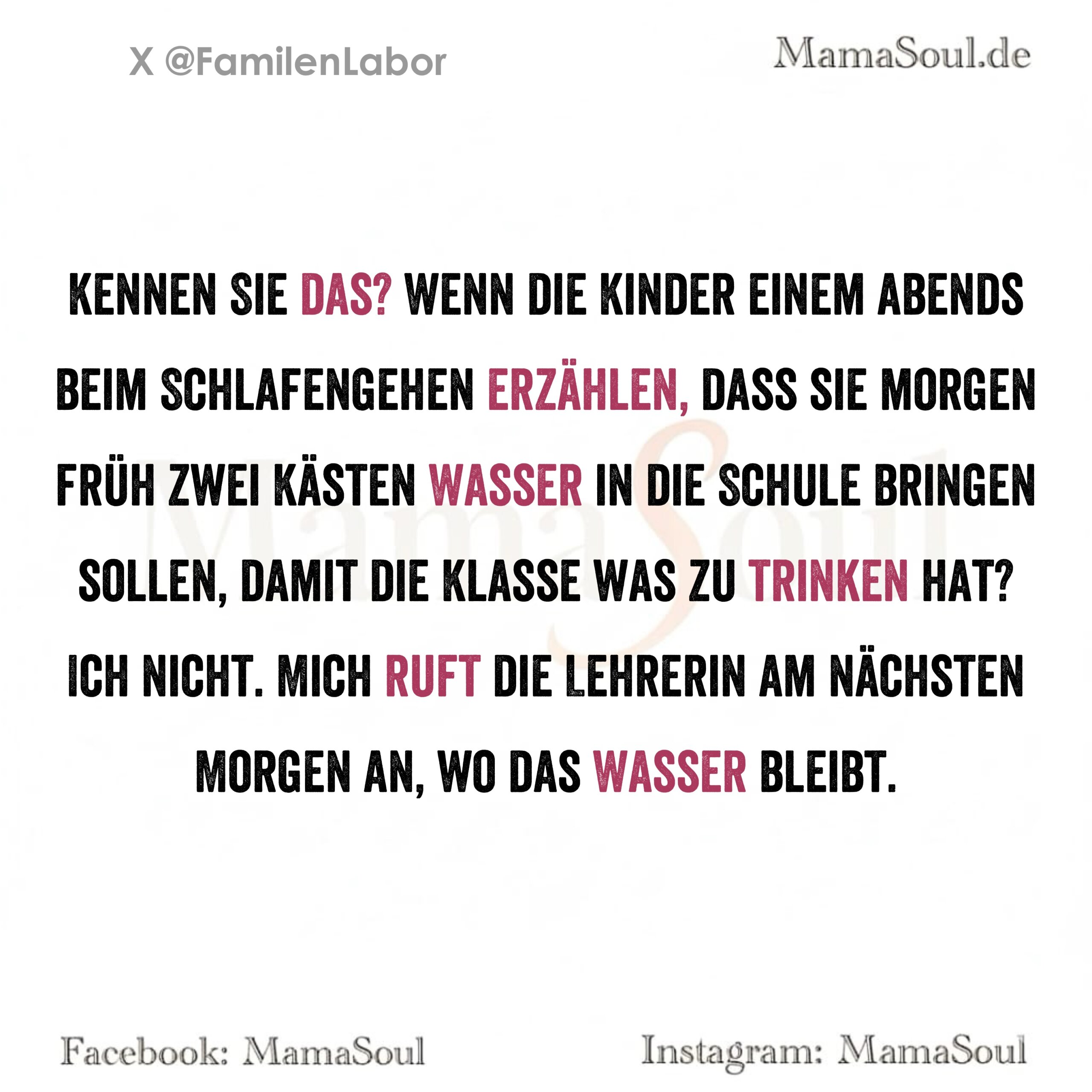 Ich nicht. Mich ruft die Lehrerin am nächsten Morgen an, wo das Wasser bleibt.