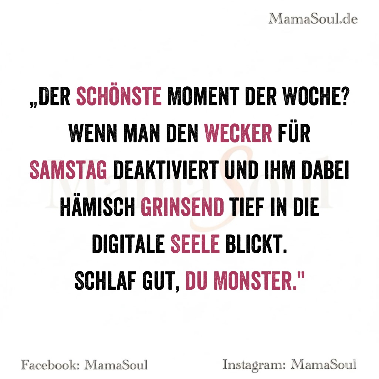 „Der schönste Moment der Woche? Wenn man den Wecker für Samstag deaktiviert und ihm dabei hämisch grinsend tief in die digitale Seele blickt.