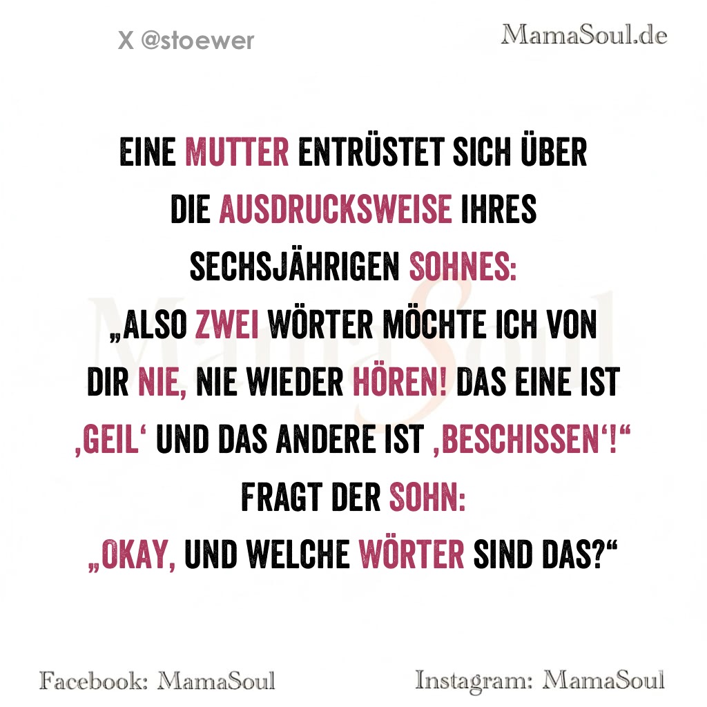 „Also zwei Wörter möchte ich von dir nie, nie wieder hören! Das eine ist ‚geil‘ und das andere ist ‚beschissen‘!“