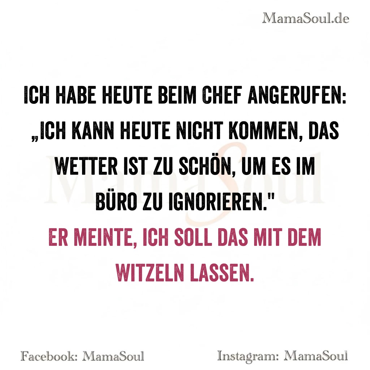Ich habe heute beim Chef angerufen: „Ich kann heute nicht kommen, das Wetter ist zu schön, um es im Büro zu ignorieren." Er meinte, ich soll das mit dem Witzeln lassen.
