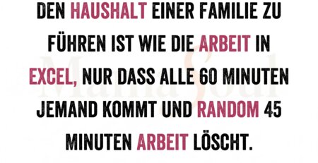 Den Haushalt einer Familie zu führen ist wie die Arbeit in Excel, nur dass alle 60 Minuten jemand kommt und... read more