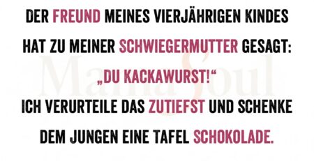 Der Freund meines vierjährigen Kindes hat zu meiner Schwiegermutter gesagt: „Du Kackawurst!“ Ich verurteile das zutiefst und schenke dem Jungen eine Tafel... read more