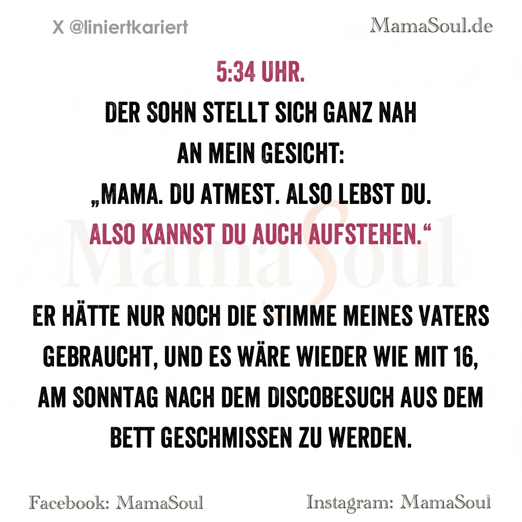 „Mama. Du atmest. Also lebst du. Also kannst du auch aufstehen.“