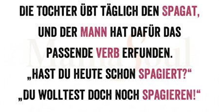 Die Tochter übt täglich den Spagat, und der Mann hat dafür das passende Verb erfunden. „Hast du heute schon spagiert?“ „Du wolltest... read more