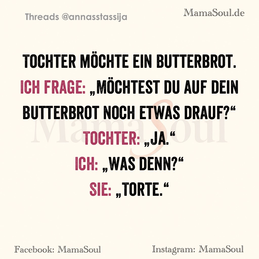 Ich frage: „Möchtest du auf dein Butterbrot noch etwas drauf?“
