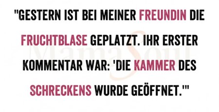 "Gestern ist bei meiner Freundin die Fruchtblase geplatzt. Ihr erster Kommentar war: 'Die Kammer des Schreckens wurde geöffnet.'" read more