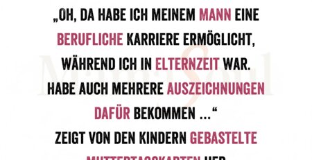 „Sie haben da eine Lücke im Lebenslauf …?“ „Oh, da habe ich meinem Mann eine berufliche Karriere ermöglicht, während ich in... read more