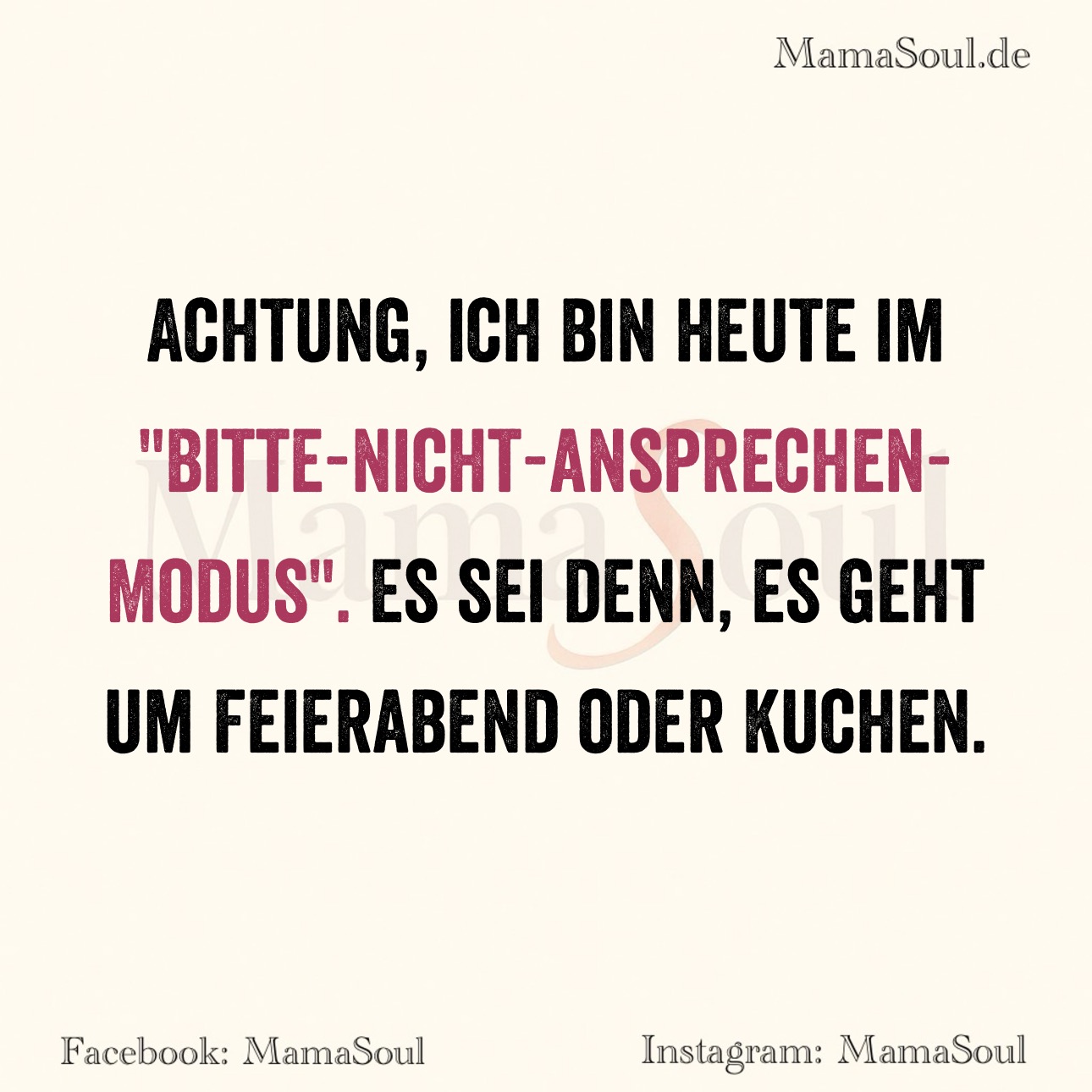 Achtung, ich bin heute im „Bitte-nicht-ansprechen-Modus“. Es sei denn, es geht um Feierabend oder Kuchen.