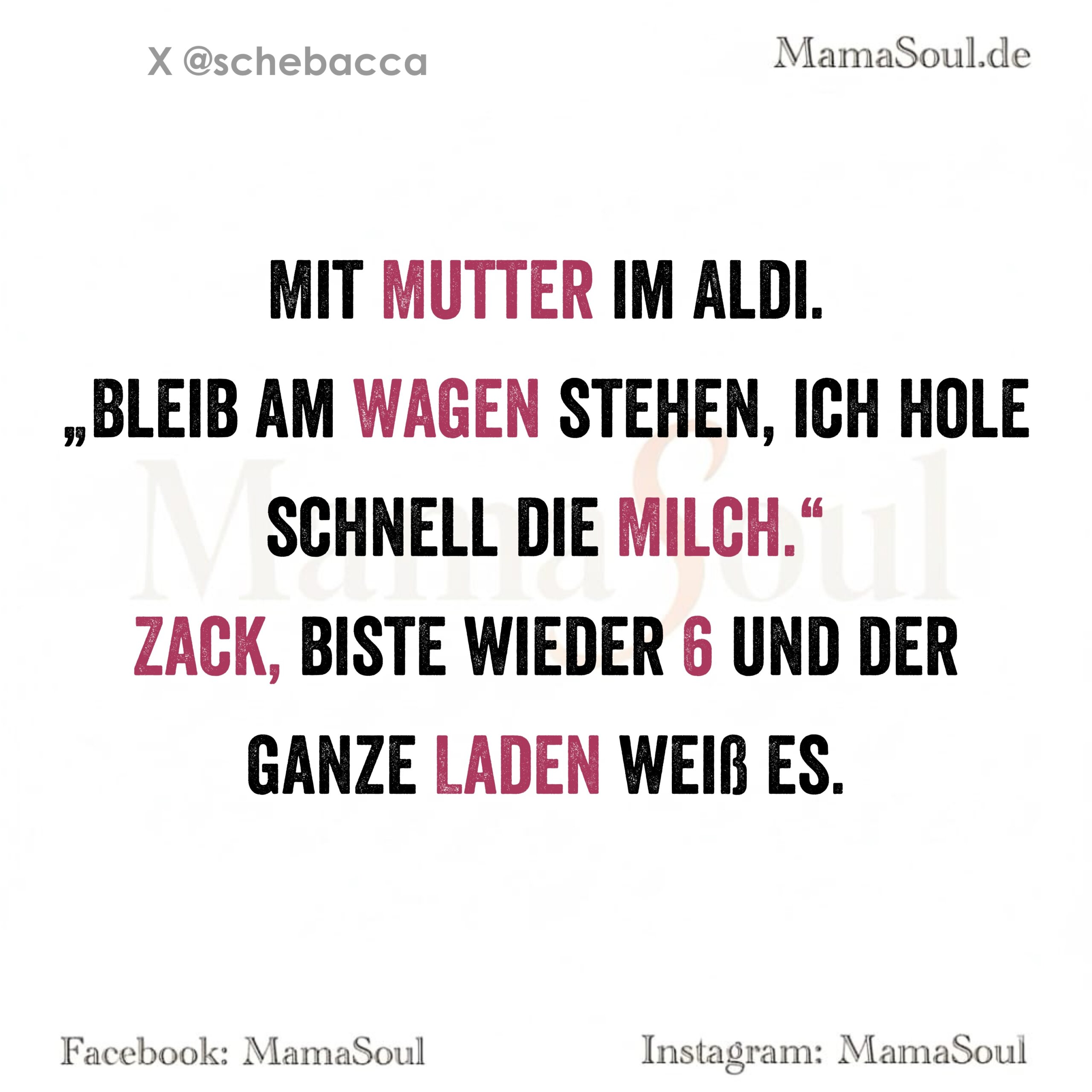 Mit Mutter im Aldi. „Bleib am Wagen stehen, ich hole schnell die Milch.“ Zack, biste wieder 6 und der ganze Laden weiß es.
