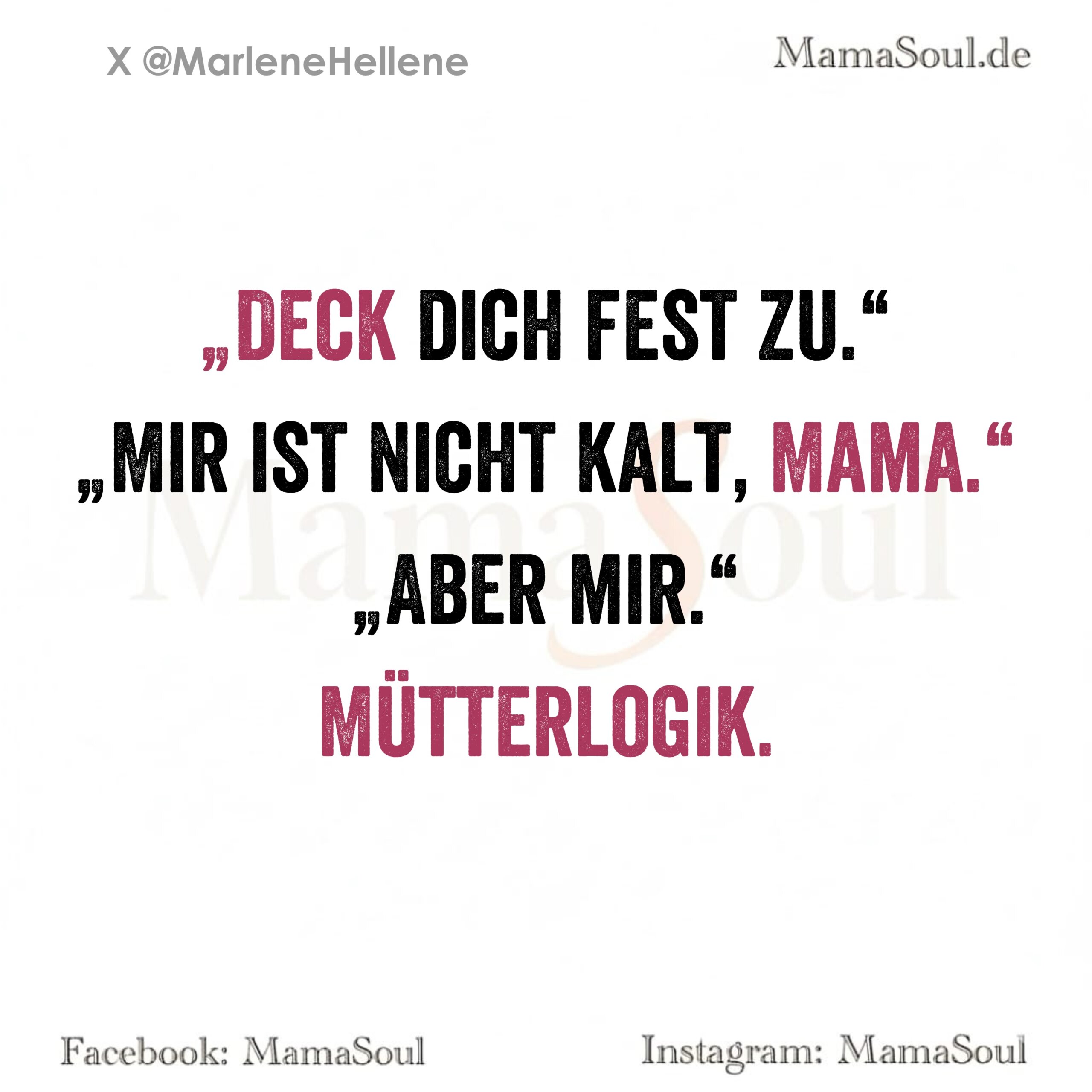 „Deck dich fest zu.“ „Mir ist nicht kalt, Mama.“ „Aber mir.“ Mütterlogik.
