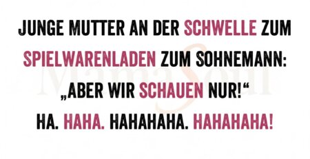 Junge Mutter an der Schwelle zum Spielwarenladen zum Sohnemann: „Aber wir schauen nur!“ Ha. Haha. Hahahaha. Hahahaha! read more
