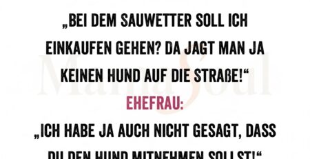 Ehemann: „Bei dem Sauwetter soll ich einkaufen gehen? Da jagt man ja keinen Hund auf die Straße!“ Ehefrau: „Ich habe ja auch nicht... read more