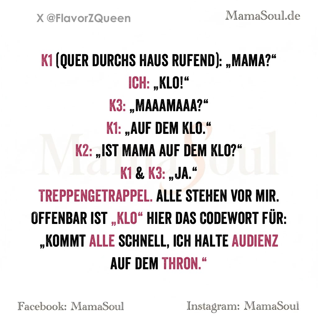 Offenbar ist „Klo“ hier das Codewort für: „Kommt alle schnell, ich halte Audienz auf dem Thron.“