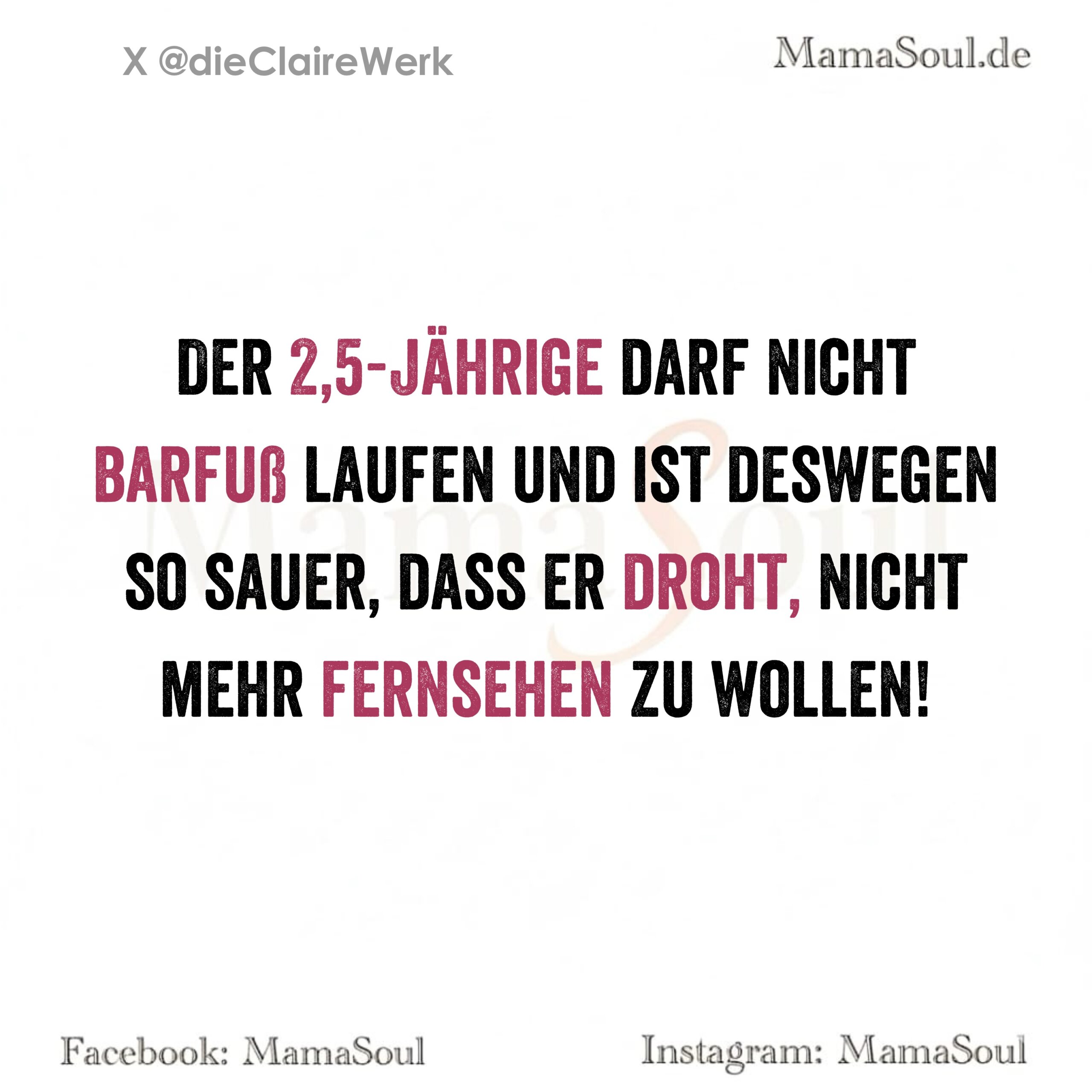 Der 2,5-Jährige darf nicht barfuß laufen und ist deswegen so sauer, dass er droht, nicht mehr fernsehen zu wollen!