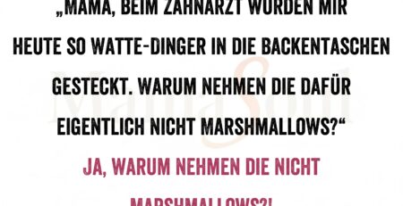 „Mama, beim Zahnarzt wurden mir heute so Watte-Dinger in die Backentaschen gesteckt. Warum nehmen die dafür eigentlich nicht Marshmallows?“ Ja, warum... read more