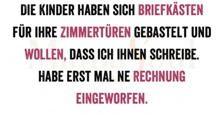 Die Kinder haben sich Briefkästen für ihre Zimmertüren gebastelt und wollen, dass ich ihnen schreibe. Habe erst mal ne Rechnung eingeworfen. read more