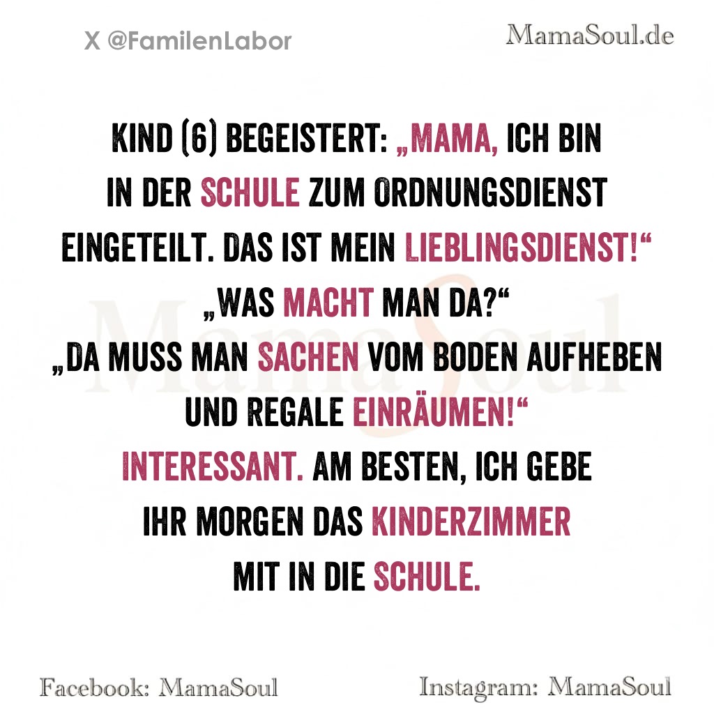 Kind (6) begeistert: „Mama, ich bin in der Schule zum Ordnungsdienst eingeteilt. Das ist mein Lieblingsdienst!“