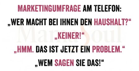 Marketingumfrage am Telefon: „Wer macht bei Ihnen den Haushalt?“ „Keiner!“ „Hmm. Das ist jetzt ein Problem.“ „Wem sagen Sie das!“ read more