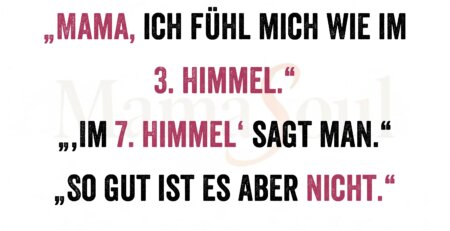 „Mama, ich fühl mich wie im 3. Himmel.“ „‚Im 7. Himmel‘ sagt man.“ „So gut ist es aber nicht.“ read more