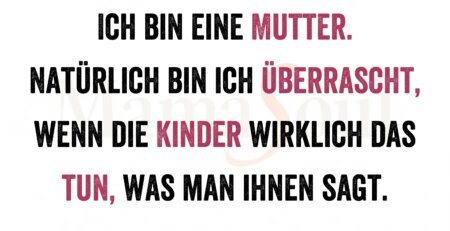 Ich bin eine Mutter. Natürlich bin ich überrascht, wenn die Kinder wirklich das tun, was man ihnen sagt. read more