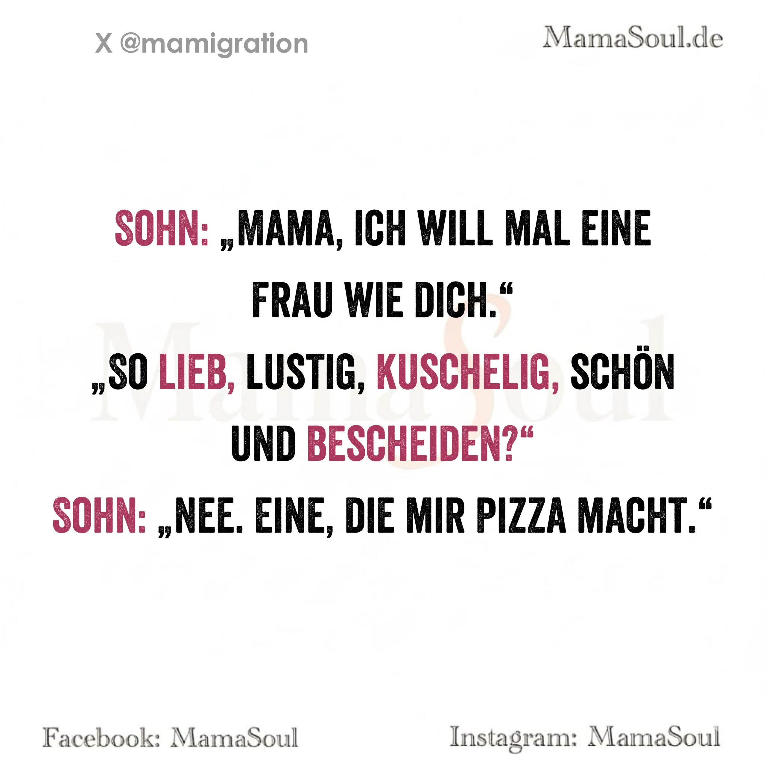 Sohn: „Nee. Eine, die mir Pizza macht.“