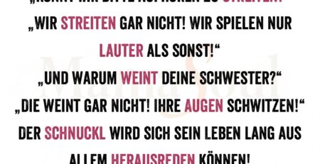 „Könnt ihr bitte aufhören zu streiten?“ „Wir streiten gar nicht! Wir spielen nur lauter als sonst!“ „Und warum weint deine Schwester?“ „Die weint... read more