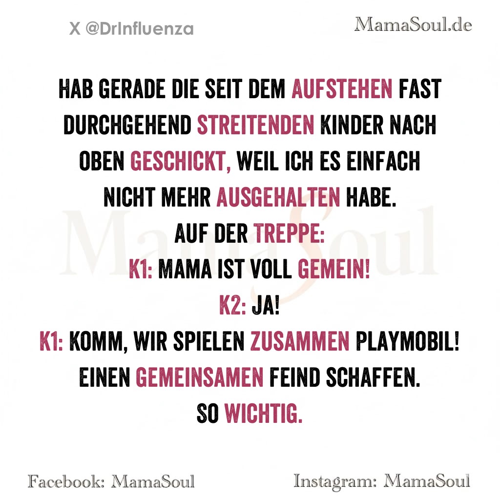 Hab gerade die seit dem Aufstehen fast durchgehend streitenden Kinder nach oben geschickt, weil ich es einfach nicht mehr ausgehalten habe.