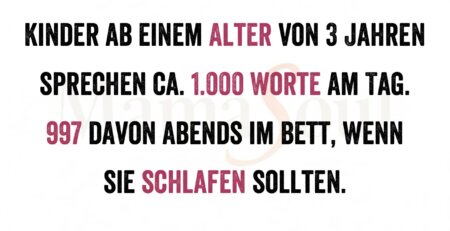 Kinder ab einem Alter von 3 Jahren sprechen ca. 1.000 Worte am Tag. 997 davon abends im Bett, wenn sie schlafen... read more