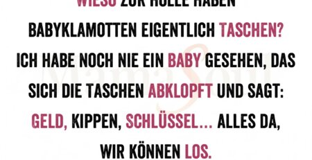 Wieso zur Hölle haben Babyklamotten eigentlich Taschen? Ich habe noch nie ein Baby gesehen, das sich die Taschen abklopft und sagt: Geld,... read more