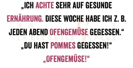 „Ich achte sehr auf gesunde Ernährung. Diese Woche habe ich z. B. jeden Abend Ofengemüse gegessen.“ „Du hast Pommes gegessen!“ „Ofengemüse!“ read more