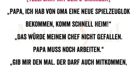 „Mama? Darf ich auf dem Rückweg vorne sitzen? Ich sag es auch nicht dem Papa! Ist unser Geheimnis.“ „Ok.“ Haustür auf: „Papa, ein... read more