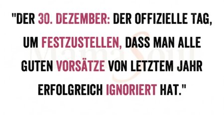 "Der 30. Dezember: Der offizielle Tag, um festzustellen, dass man alle guten Vorsätze von letztem Jahr erfolgreich ignoriert hat." read more