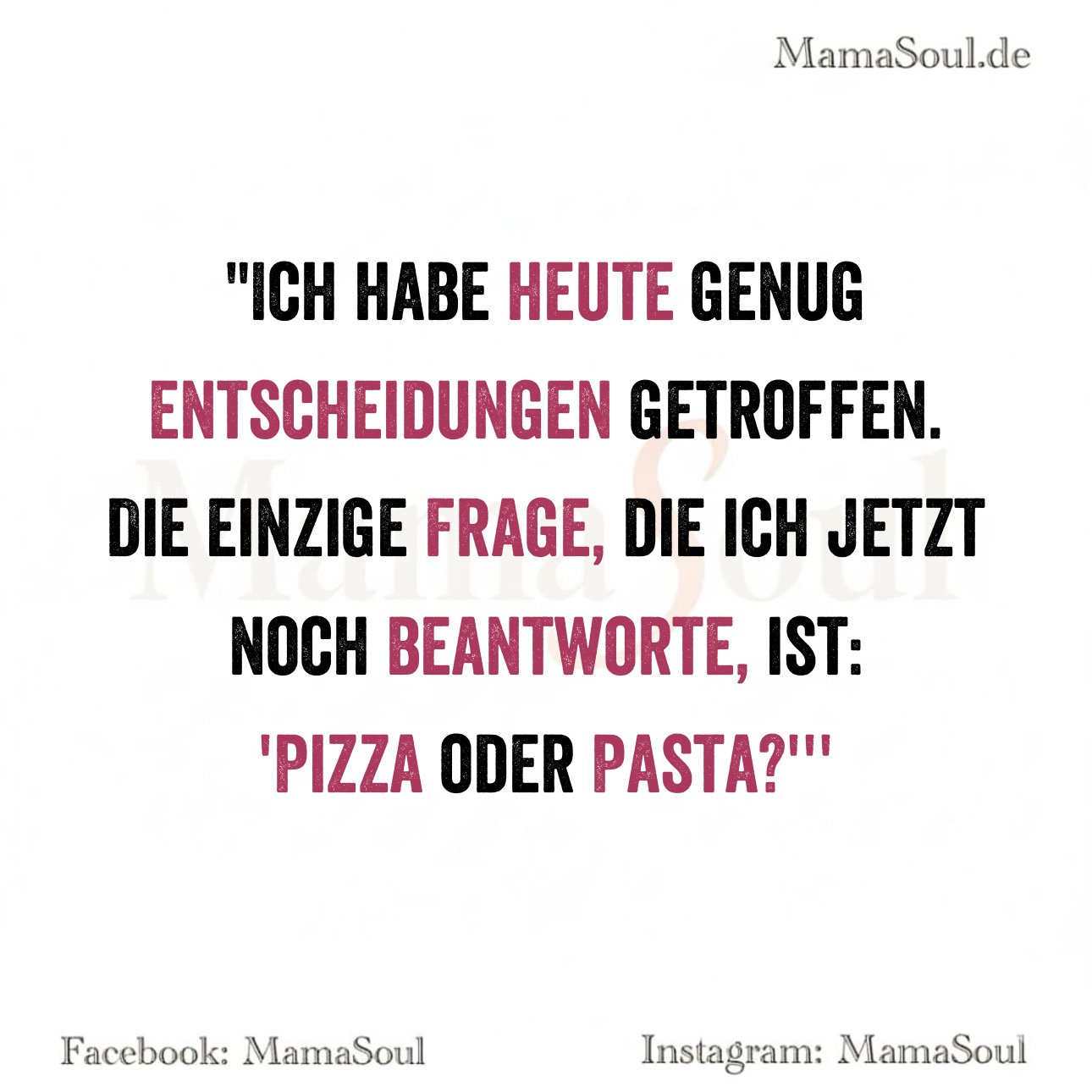Die einzige Frage, die ich jetzt noch beantworte, ist: ‚Pizza oder Pasta?“‘