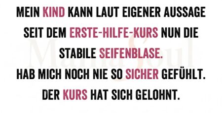 Mein Kind kann laut eigener Aussage seit dem Erste-Hilfe-Kurs nun die stabile Seifenblase. Hab mich noch nie so sicher gefühlt. Der Kurs... read more