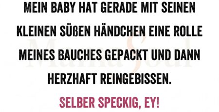 Mein Baby hat gerade mit seinen kleinen süßen Händchen eine Rolle meines Bauches gepackt und dann herzhaft reingebissen. Selber speckig, ey! read more