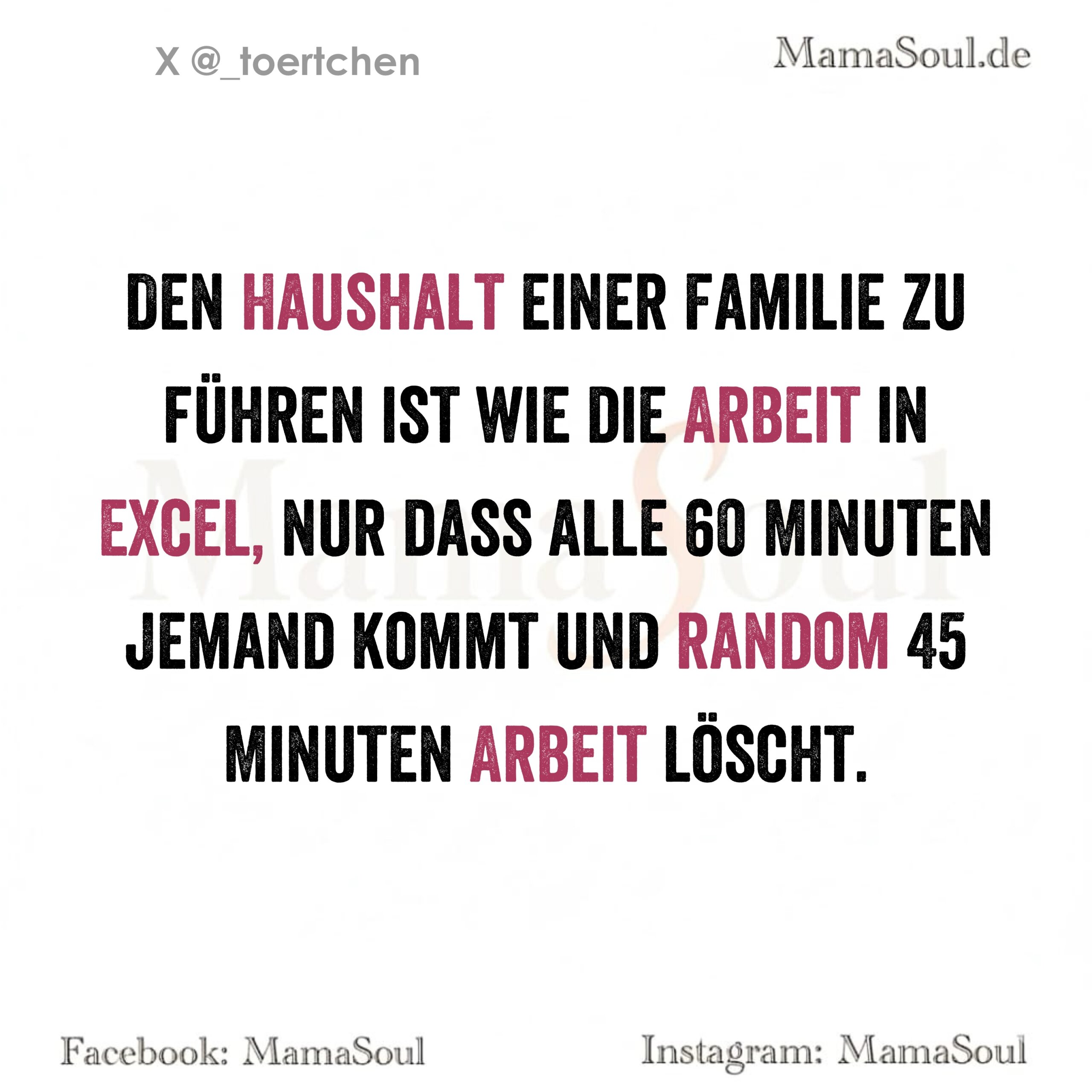 Den Haushalt einer Familie zu führen ist wie die Arbeit in Excel, nur dass alle 60 Minuten jemand kommt und random 45 Minuten Arbeit löscht.