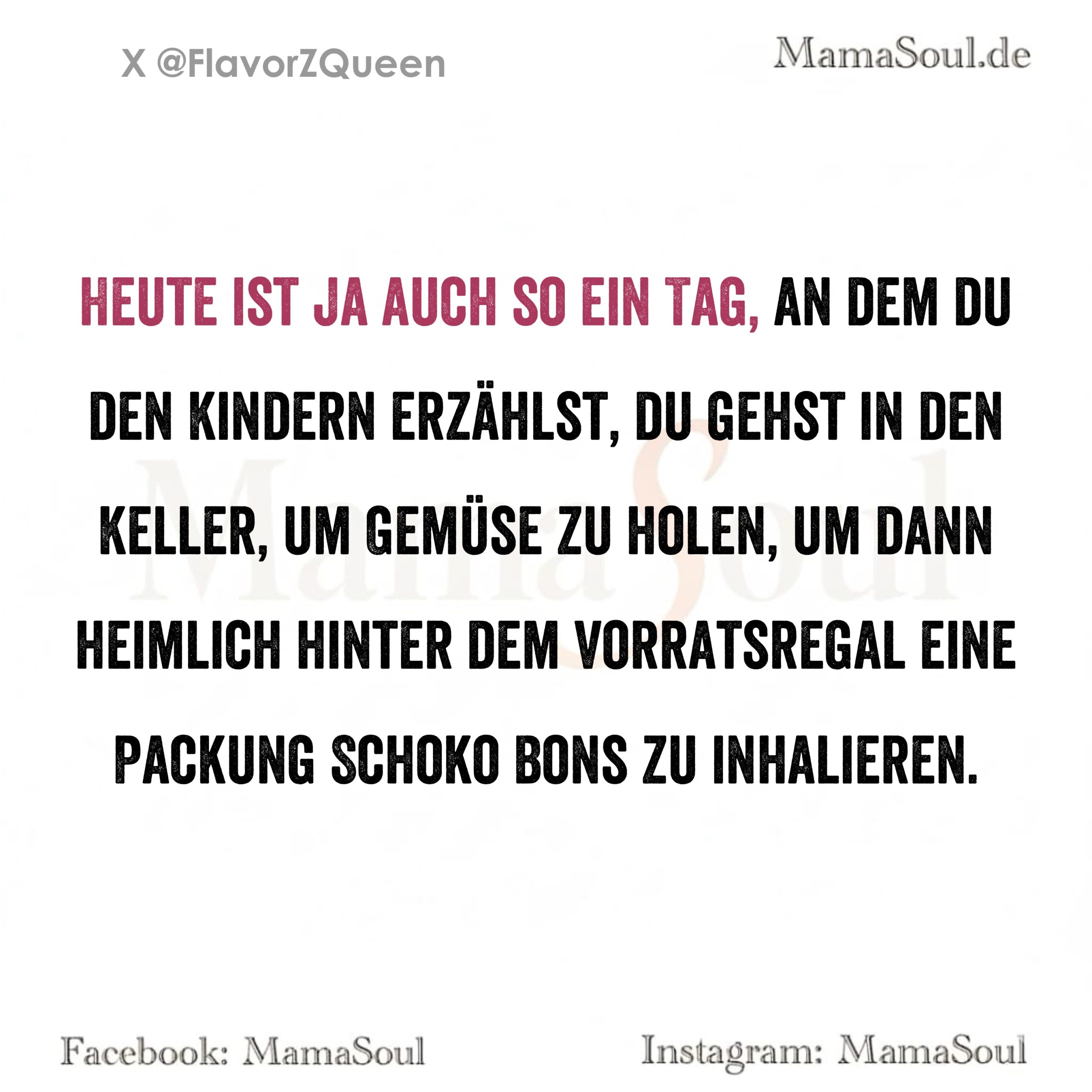 Heute ist ja auch so ein Tag, an dem du den Kindern erzählst, du gehst in den Keller, um Gemüse zu holen, um dann heimlich hinter dem Vorratsregal eine Packung Schoko Bons zu inhalieren.