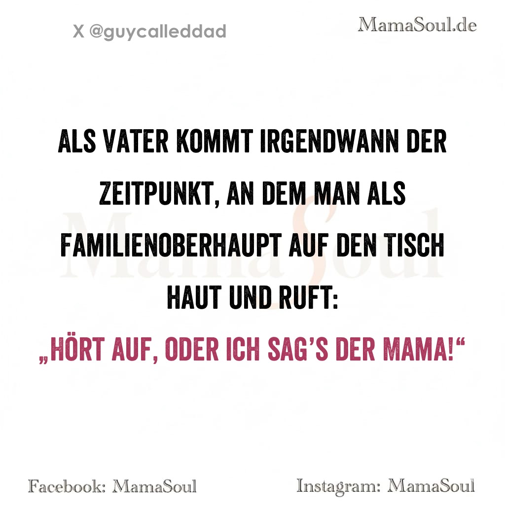 Als Vater kommt irgendwann der Zeitpunkt, an dem man als Familienoberhaupt auf den Tisch haut und ruft: „Hört auf, oder ich sag’s der Mama!“