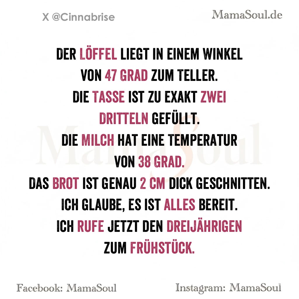 Ich rufe jetzt den Dreijährigen zum Frühstück.