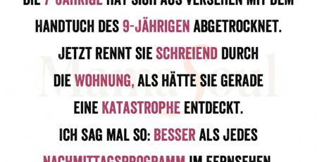 Die 7-Jährige hat sich aus Versehen mit dem Handtuch des 9-Jährigen abgetrocknet. Jetzt rennt sie schreiend durch die Wohnung, als hätte... read more