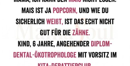 Mama, ich kann den Mais nicht essen. Mais ist ja Popcorn, und wie du sicherlich weißt, ist das echt nicht... read more