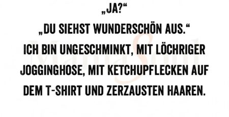 „Mama?“ „Ja?“ „Du siehst wunderschön aus.“ Ich bin ungeschminkt, mit löchriger Jogginghose, mit Ketchupflecken auf dem T-Shirt und zerzausten Haaren. So geht das, Jungs. read more