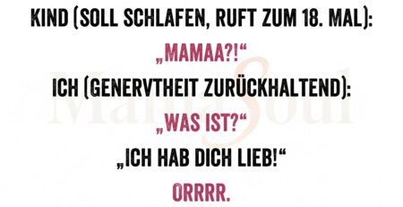 Kind (soll schlafen, ruft zum 18. Mal): „Mamaa?!“ Ich (Genervtheit zurückhaltend): „Was ist?“ „Ich hab dich lieb!“ Orrrr. read more