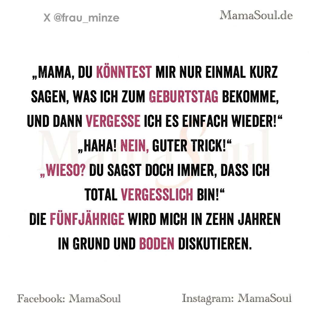 „Mama, du könntest mir nur einmal kurz sagen, was ich zum Geburtstag bekomme, und dann vergesse ich es einfach wieder!“