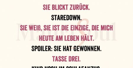 Stehe in der Küche. Blicke in die Kaffeemaschine. Sie blickt zurück. Staredown. Sie weiß, sie ist die Einzige, die mich heute am Leben hält. Spoiler:... read more