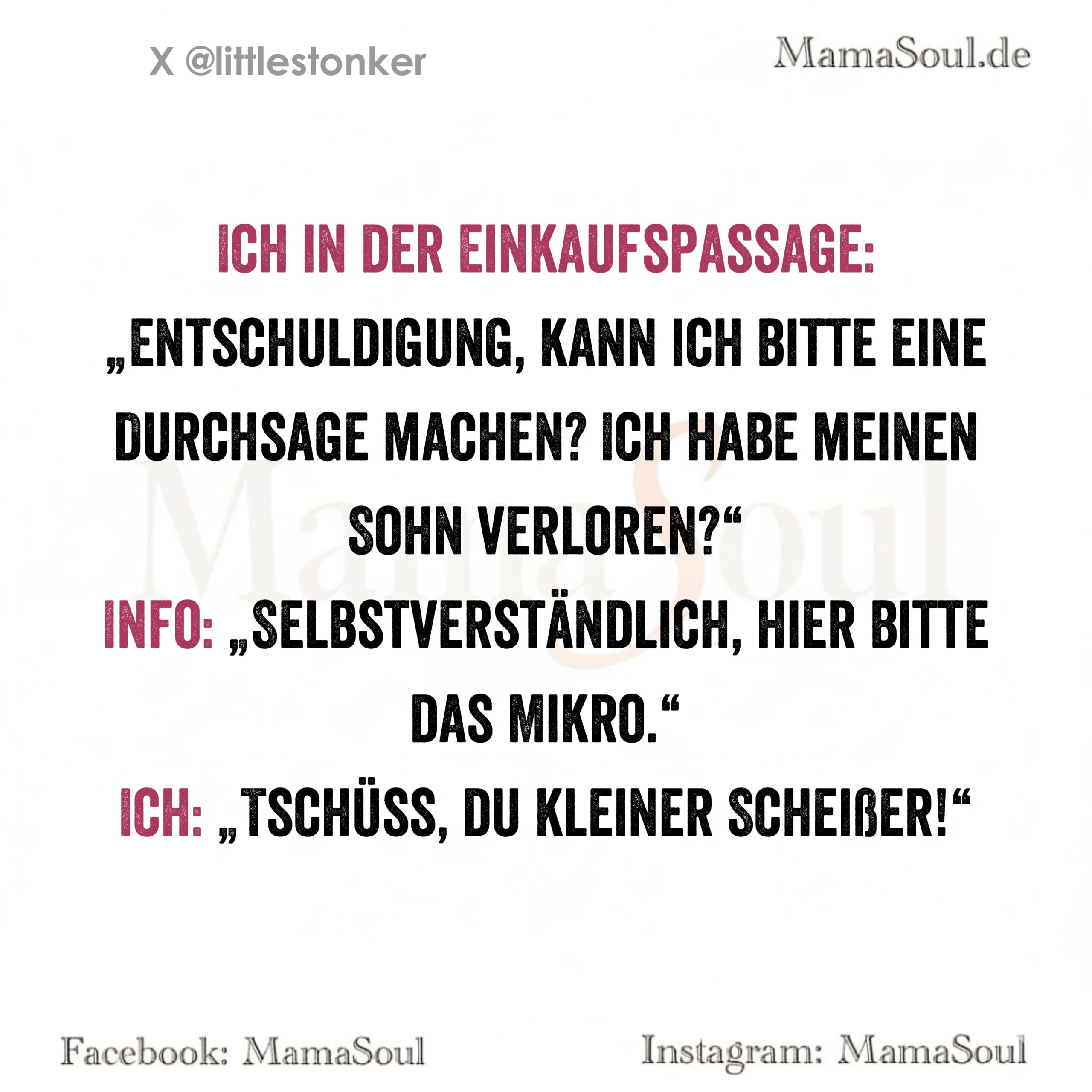 Ich in der Einkaufspassage: „Entschuldigung, kann ich bitte eine Durchsage machen? Ich habe meinen Sohn verloren?“