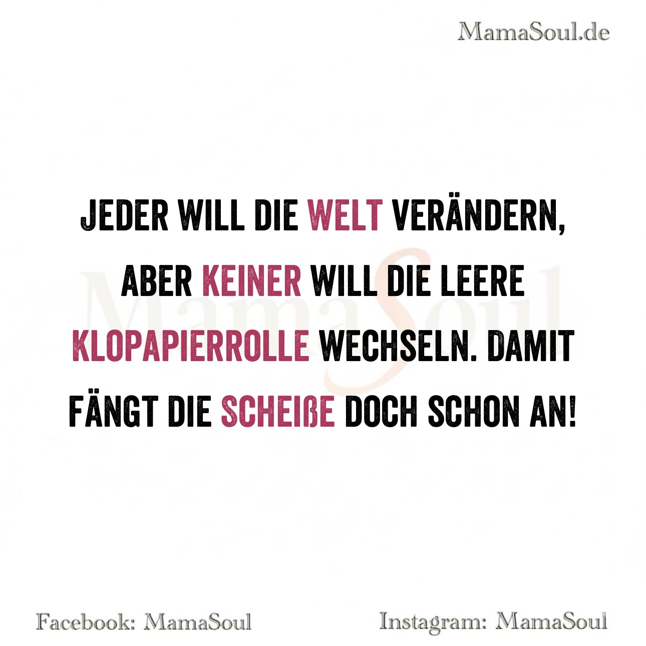 Jeder will die Welt verändern, aber keiner will die leere Klopapierrolle wechseln. Damit fängt die Scheiße doch schon an!