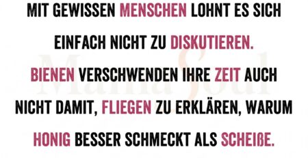 Mit gewissen Menschen lohnt es sich einfach nicht zu diskutieren. Bienen verschwenden ihre Zeit auch nicht damit, Fliegen zu erklären, warum... read more